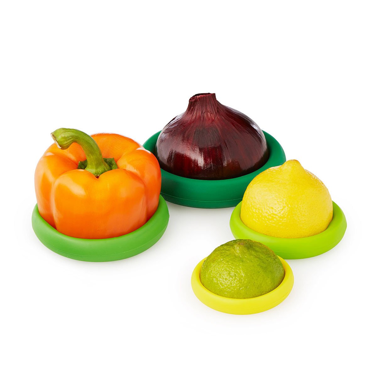 Show the contents of your crisper a little love. These silicone cups embrace cut produce to keep your fruits and veggies fresh longer. The set comes with food huggers of various sizes that cover a whole garden of groceries, from limes and bananas to peppers and onions. The form-fitting design also makes them great lid stand-ins as well as dependable jar openers. Designed byMichelle Ivankovic and Adrienne McNicholas. Made of BPA and phthalate free silicone in China.